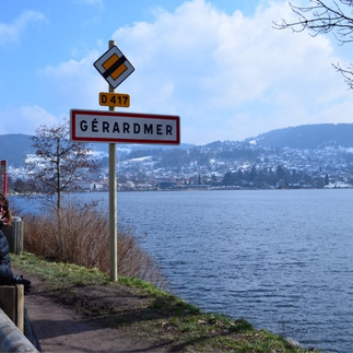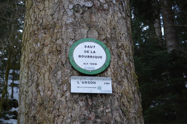 We had decided on a good walk today and the guide suggested the waterfall at Saut de la Bourrique. The guide said 2.5 hours......I can believe them just, in summer with a following wind. We set off to the start point for everything in Gerardmer the quay by the lake. Once out of town the path got snowier and lots steeper. To be fair it was very well marked with little red circles on almost every tree.