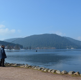 This one actually caught a beautiful brown trout as we were passing. The walk was very pleasant if a little rough underfoot but gave great views of the town and ski resort. There are lots of these crosses all around the lake but as yet I haven't found out what they signify.