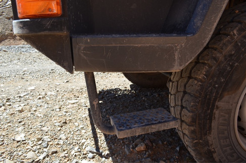 We accessed the river bed and made our way down eventually climbing out and onto the old drovers road where we met guys coming up the other way. It was a test for the truck "and the driver" so I had a quick assessment. Nothing broken and nothing moved, truck = a bent rear light bracket, a nudge on the front bumper, and a couple of broken step clips.
